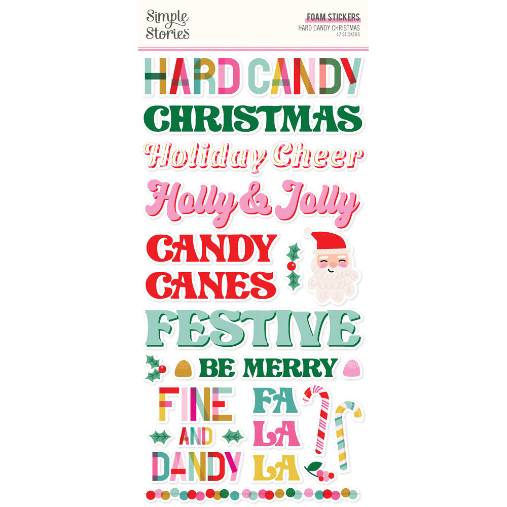What you'll get: Simple Stories Hard Candy Christmas Collection Kit, Foam Stickers, Bits & Pieces, Journal Bits, Adhesive Brads & Glitter Enamel Dots