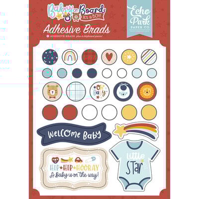 Baby On Board It's A Boy Collection Kit, Ephemera, Title & Phrases, 6x6 Paper Pad, Enamel Dots, Adhesive Brads